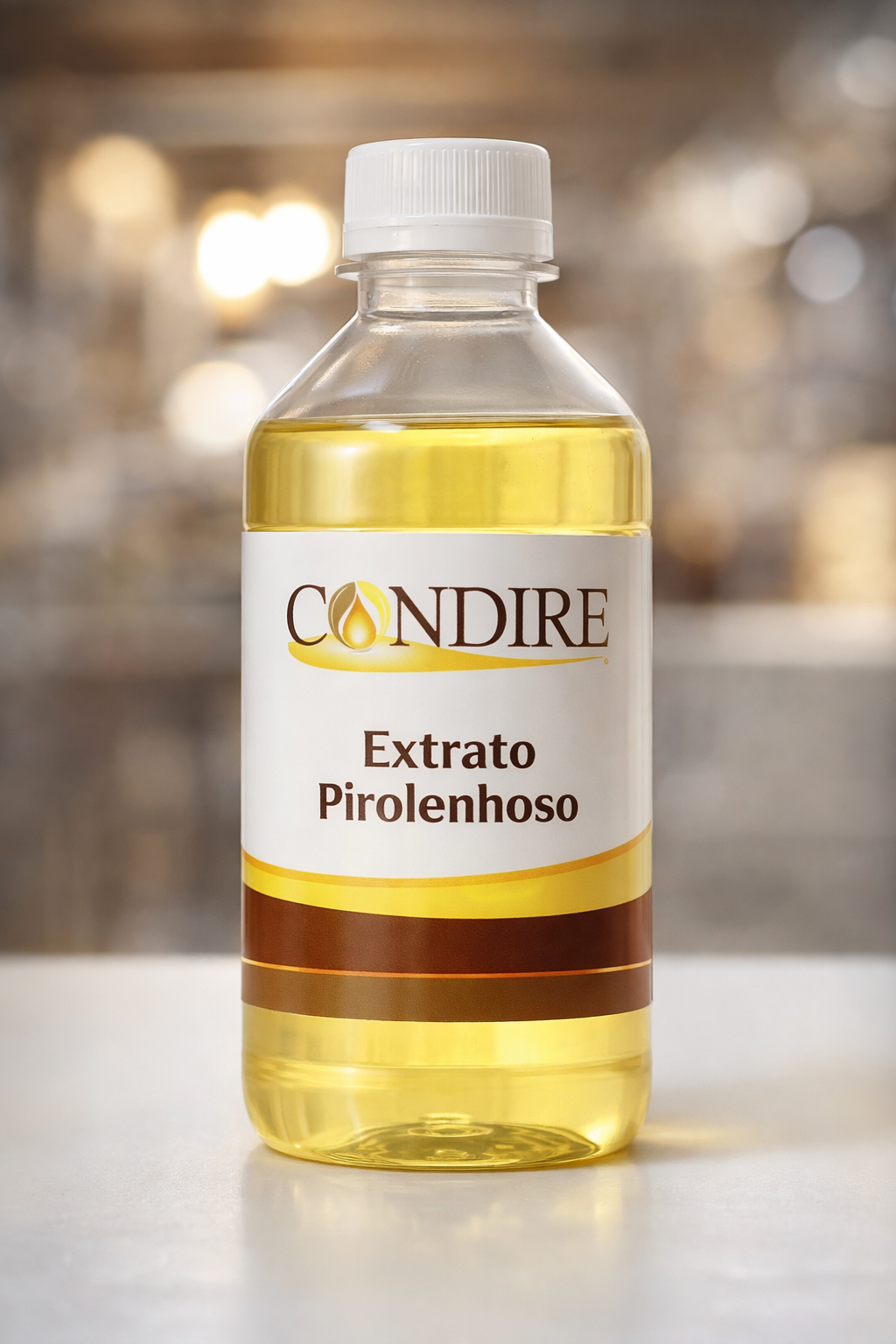 O Extrato Pirolenhoso CONDIRE é um composto líquido de origem vegetal obtido por processo controlado de condensação de madeira de reflorestamento, resultando em uma solução rica em ácidos orgânicos, compostos fenólicos e aldeídos naturais.